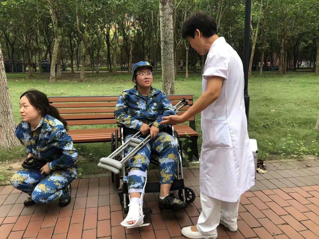 新生军训期间,安排医护人员在军训现场待命,储备应对中暑、腹泻等所需的药品和急救物资,积极应对2024年新生军训医疗巡回工作。