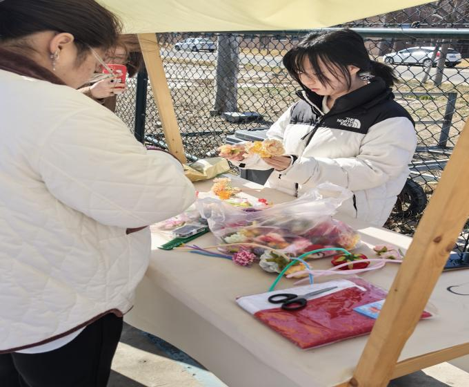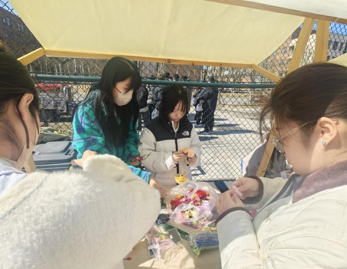 为让更多师生共享植绿乐趣,现场设置免费趣味体验区,打破参赛身份限制,志愿者为师生提供绿植主题簪花梳头服务,营造浓厚的植树节氛围。