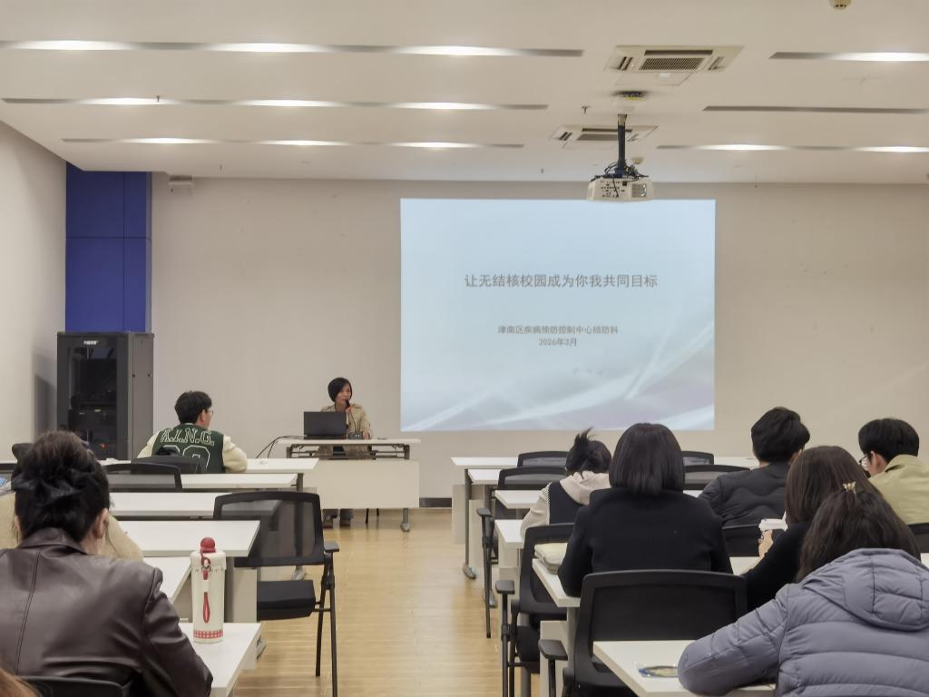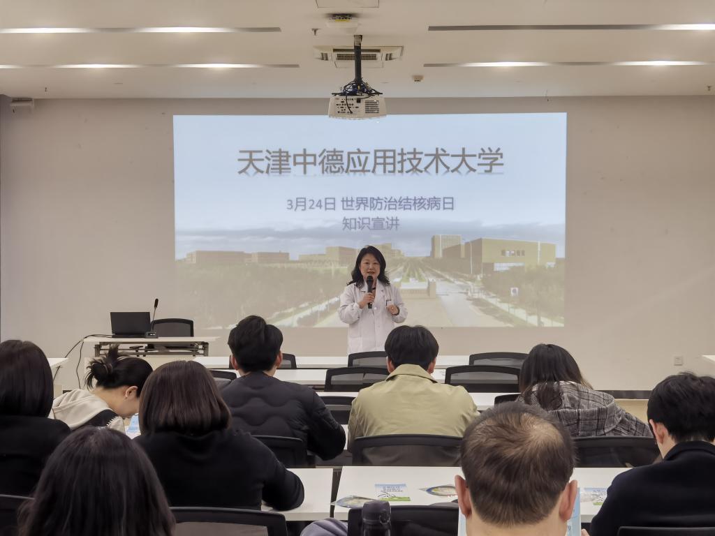 3月24日是第31个“世界防治结核病日”,为深入贯彻落实结核病防治规划,切实提升高校师生的健康防护意识,当日,天津市津南区疾病预防控制中心组织结核病防治专家团队,走进天津中德应用技术大学“一站式”学生社区人防基地开展主题宣讲活动,以“全面行动、全力投入、全民参与、终结结核”为核心,为全校辅导员带来一场专业详实的健康科普课 。