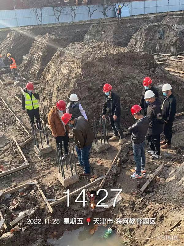 5、11月25日,实训楼B区:承台模板支设完成,加固完成至100%;梁底模板支设完成,加固完成至100%;梁侧模板支设完成至100%,加固完成至100%;接地网焊接完成至100%。