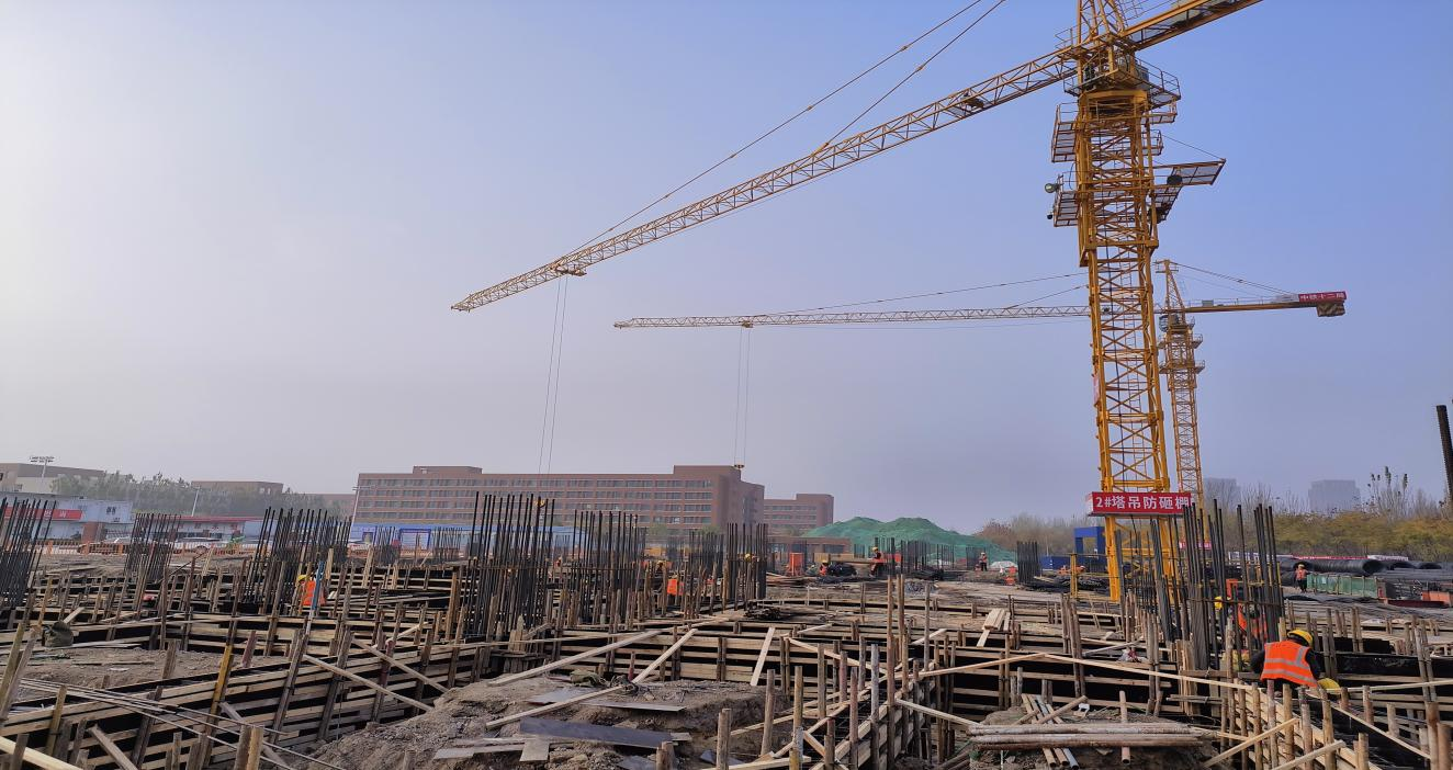 设备楼:基础钢筋绑扎完成至20%。