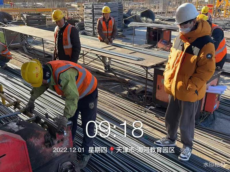 现阶段施工内容:施工现场自查;施工现场文明施工;钢筋工现场分料,加工设备楼基础钢筋;木工现场分料、加工、加固;组织人员进行核酸检测;工人宿舍检查。