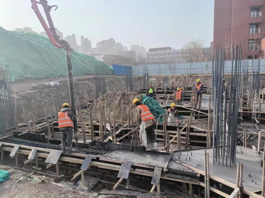 设备楼:基础混凝土浇筑完成至100%。