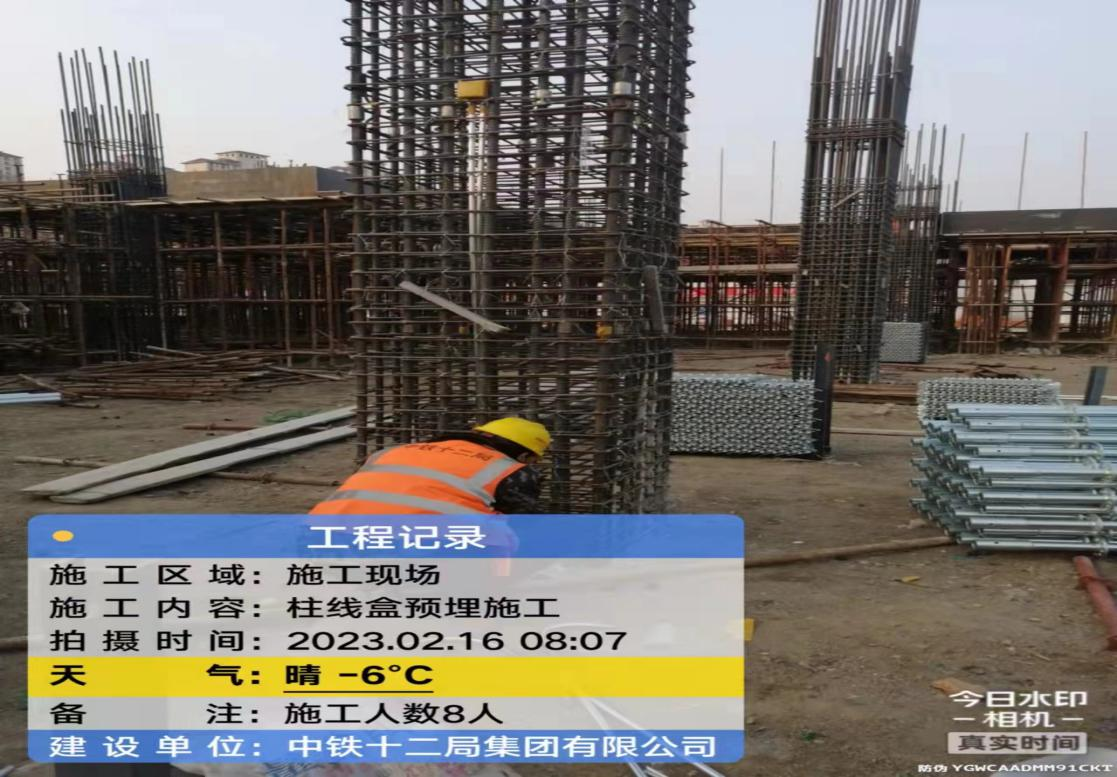 基础柱钢筋绑扎完成100%;电缆沟垫层完成100%,电缆沟底板防水施工完成100%。