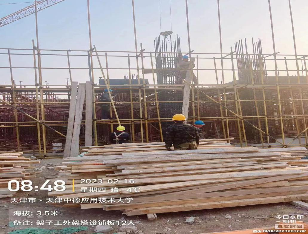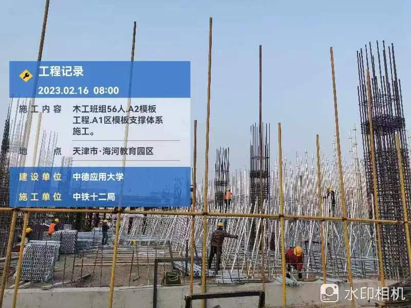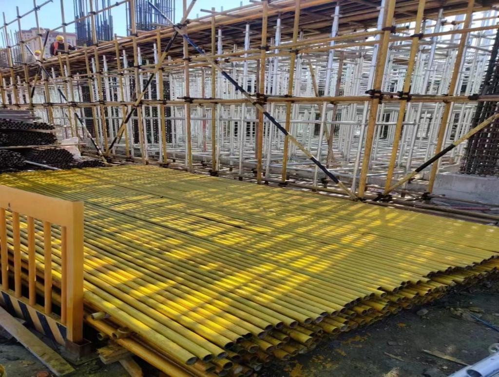 一层楼层板满堂支架搭设、一层现浇梁底板拼装完成90%;一层水电安装预留预埋及接地连接完成100%;外脚手架搭设完成100%。