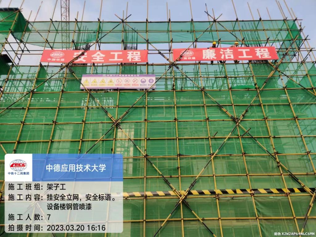 回复;三层浇筑完成后已及时搭设完外架以及挂设密目网、层间网。(李晓伟)
